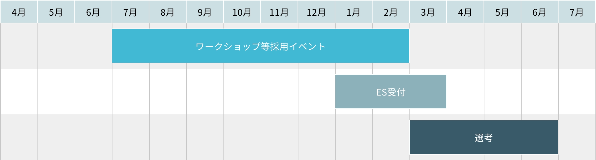 大学3年生の夏休みから年明けにかけて、学内・学外セミナー、1dayオンラインイベント(ワークショップやテーマセミナー)、対面型イベントなど、さまざまな就活イベントを開催予定です。