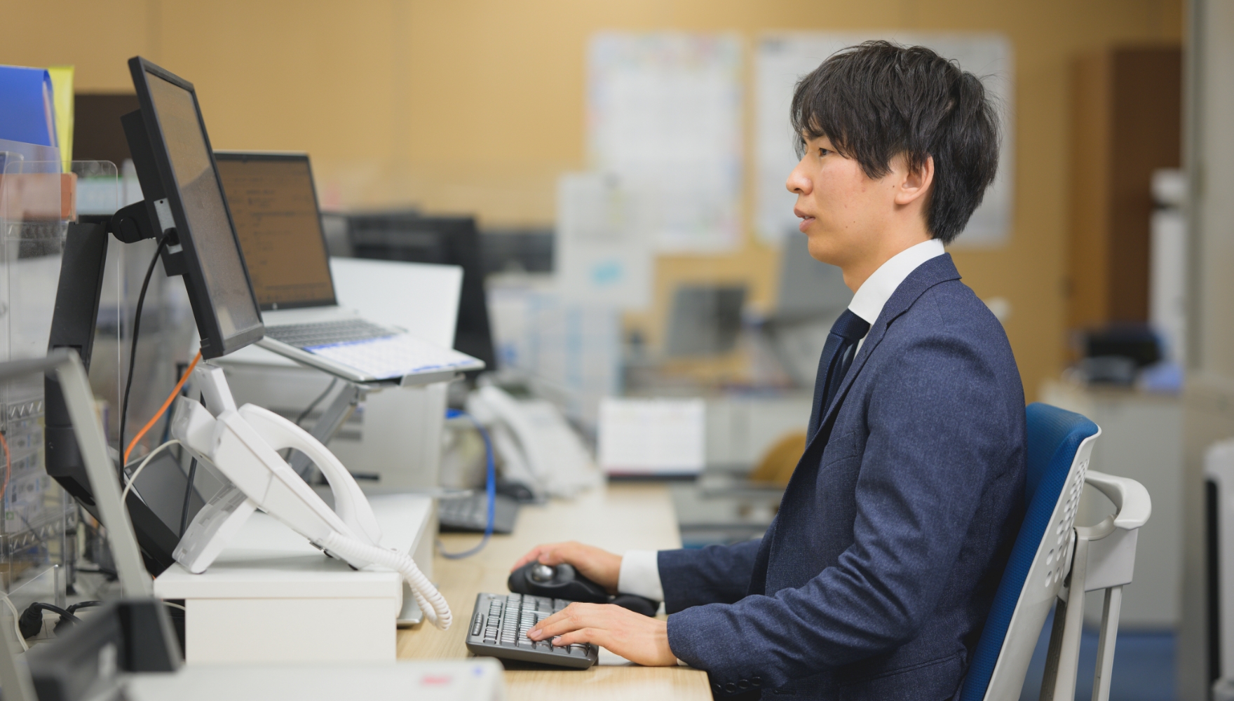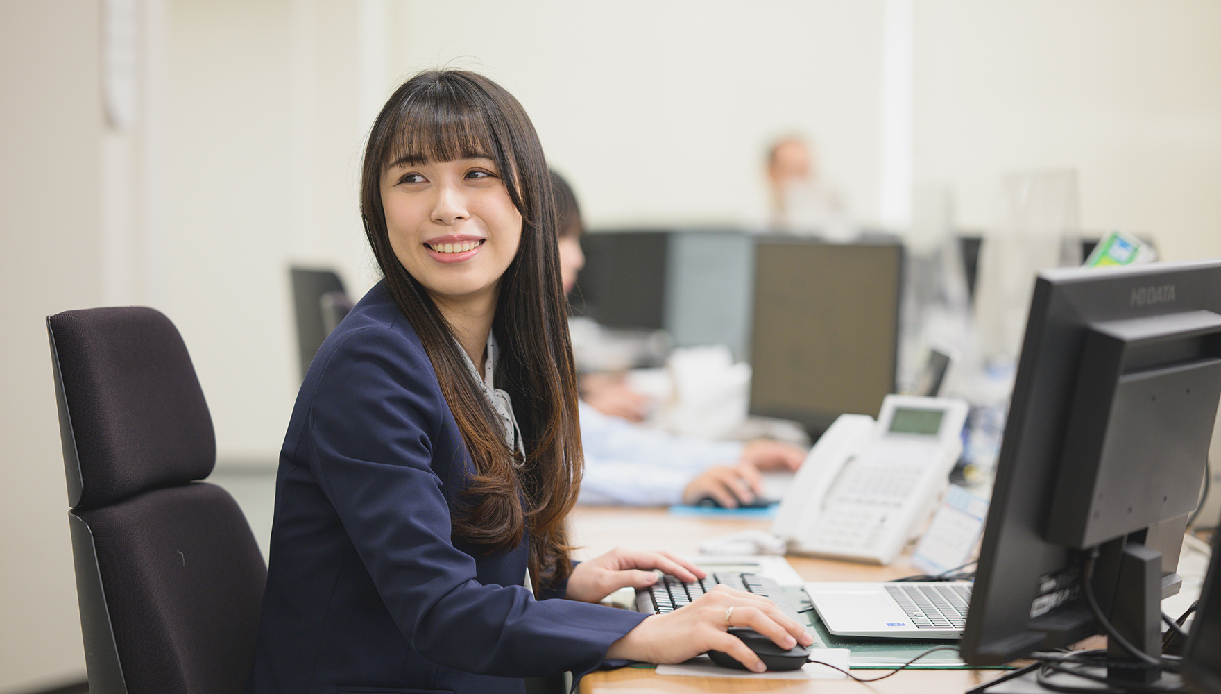 私は現在、金融証券営業部の営業管理課に所属し、主に国内金融機関および非居住者との各種取引にかかるミドルバック事務を担当しています。具体的には、株式や債券のレポ取引、有価証券担保ローン取引、デリバティブ取引に関する約定登録、残高・期日管理、ならびに資金・有価証券担保の管理を行っています。